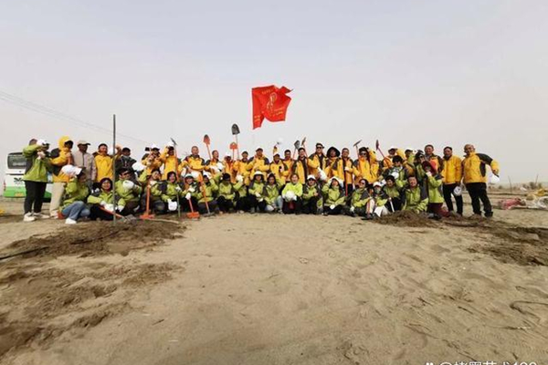 那种向沙漠要绿色、敢叫日月换新天的战斗精神,感染和鼓舞着李院士、朱教授夫妇及其他与会者,知识分子的责任感、使命感召唤着他们。于是,李院士和朱教授这对风雨同舟几十年的“灵魂伴侣”回头一合计,马上出钱出力组织成立麦盖提志愿者义务植树团队,并从2015年春季开始了第一届麦盖提义务植树造林活动。有意义的是,第一届的16位志愿者成员,多半是朱教授当年的航测同事同学,五十年前,他们意气风发地走出校门,就来到过祖国的西域边疆测量国土,与这片土地结下了半个世纪的缘份。当年英姿飒爽的年轻人,如今多半已是年逾古稀之人,但他们老当益壮,毅然决然地再次踏上万里征程,开始了麦盖提义务植树的善举,再次书写可歌可泣的人生新篇章。