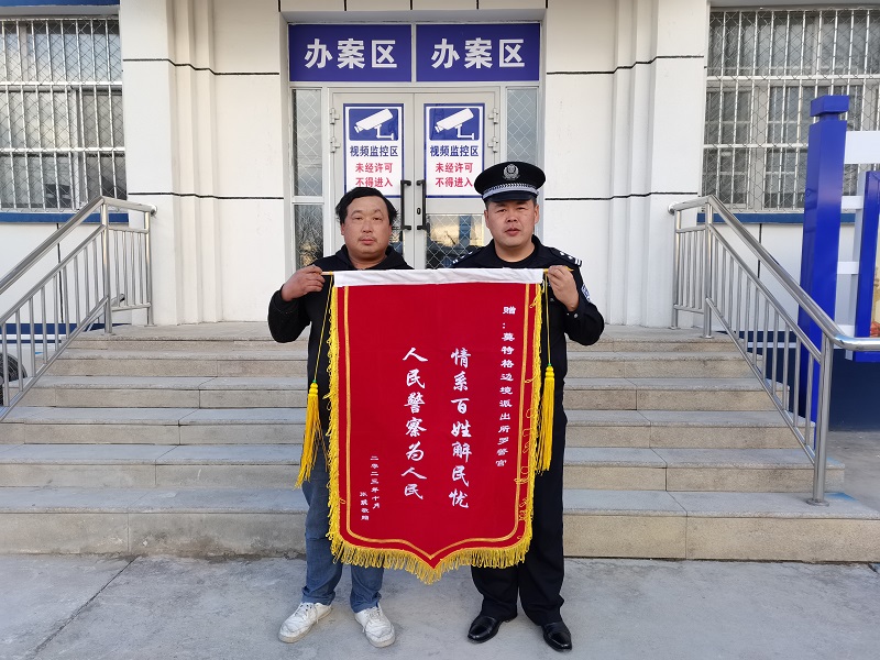 为进一步做好边境辖区人员安全管理,夯实安全稳定工作基础。近日,新疆塔城边境管理支队莫特格边境派出所民警罗建涛收到群众送来“情系百姓解民忧 人民警察为人民”的锦旗。