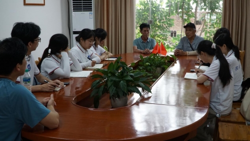 为了汲取老一辈党员的智慧和力量,传承历久弥坚的红色基因,实践队来到新街居委会参加老党员座谈会,老党员叶门日先生和叶发良先生结合自身工作和生活经历,分享了自己的入党历程,深情地讲述了自己亲身经历的红色故事。“我的心是红色的,如果不信,就将我的心脏剖出来给你看看,我的心一直都是红的!”其中一位九旬老党员叶门日铿锵有力说道。在老党员的讲述中,队员们仿佛回到了社会主义建设时期那段峥嵘岁月,广大热血青年在党的引领下,坚定信念,克服重重困难,为国家和社会的建设发展贡献自己的力量。队员们纷纷表示,要以老党员为榜样,传承红色基因,担当时代重任。