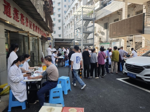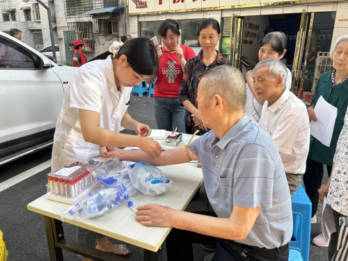 精准服务暖民心,全龄守护显担当。活动现场,医护人员化身健康卫士,为不同年龄段的居民定制专属健康服务。针对65岁以下居民,细致开展血压、血糖测量,深入检查身体状况,以专业视角详细询问病情,抽丝剥茧分析病因,贴心讲解卫生保健知识、日常注意事项、饮食安全要点及合理用药常识,用通俗易懂的语言解答居民关于常见病、多发病预防诊治及预后的困惑。特别值得关注的是,为65岁以上长者量身打造全身体检套餐,涵盖B超、心电图、视力检查、采血等多项精细化项目,全方位聚焦老年群体健康需求,用专业与专注为长者健康筑牢防线。