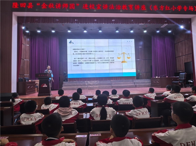 秋阳和煦,润物无声。为全面落实立德树人根本任务,加强对青少年的思想引领和法治教育,10月15日下午,湖南省隆回县关工委组织的“金秋讲师团”走进隆回县东方红小学,为全校师生带来了一场思想与知识的盛宴。本次活动特别设置了红色教育与法治教育两大专题讲座,旨在引导学子们根植家乡情怀、筑牢法律基石。