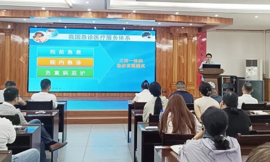 曹学锋讲解了我国“院前急救-院内急诊-重症监护”一体化急诊医疗服务体系,明确学员作为“街头第一响应人”,在体系中承担的“初步急救、快速呼救、协助转运”重要角色,帮助大家理解急救不仅是技能,更是衔接整个医疗救援链条的关键环节。