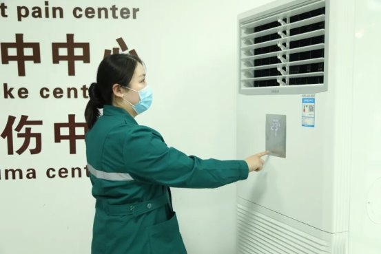 此外,因近日气温逐步降低,且急诊科位于门诊一楼温度较低,该医院在中央空调的基础上,为急诊科新增多个立式空调,持续稳定急诊科温度与空气质量。10月13日起医院对重点科室开始弹性供暖,并将各入口更换为冬季门帘。