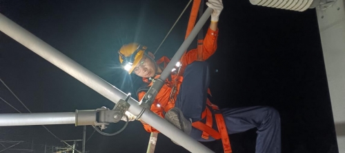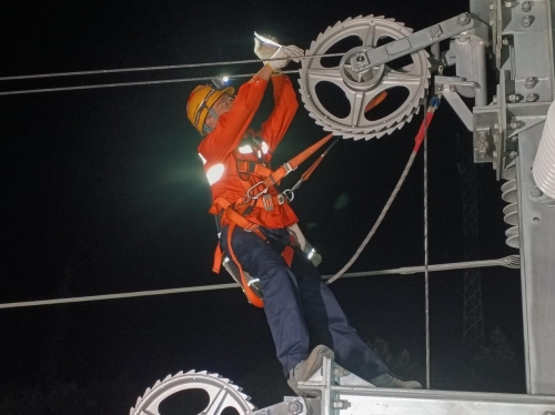 近期,南方地区“秋老虎”持续发威,夜间的气温依然居高不下、闷热异常,在沥沥的小雨中,设备显得格外的湿滑。“大家安全带打好,注意脚下踩稳了,检查仔细一点,要保证巡检设备万无一失。”习飞一边指挥作业,一边提醒大家注意检修标准和自身安全。漆黑寂静的夜晚,几束白色炽亮的灯光从接触网设备上扫过,“蜘蛛侠”们在距离地面几十米的线索上上下翻飞,时而弓背弯腰检查定位线夹,时而展臂抻手紧固螺母、检查锁片,技术人员一丝不苟的记录着设备参数。习飞一边娴熟的用力矩扳手检查螺母,一边微笑着说:“从参加工作第一天起,师傅就告诉他们“要像修钟表一样维修高铁设备”。凌晨四点多,随着轨道车入库、熄灯,一天的作业画上了圆满的句号。