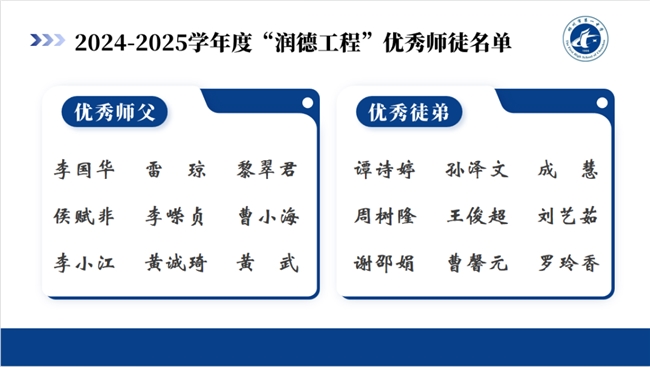 最后,学校党委副书记、校长黄鸿明对新结对的师徒团队提出殷切期望。他强调,指导教师要以身作则传扬高尚师德,毫无保留倾囊传授教学经验,主动关怀青年教师的职业成长,争做青年教师前行路上的“引路灯塔”;青年教师要秉持“空杯心态”虚心向学,在吸收前辈经验的同时勇于创新教学实践,始终坚守“立德树人”的育人初心,沉心钻研教学业务;师徒双方需摒弃形式主义,以平等开放的姿态交流互动,实现“教学相长、共同进步”。同时,学校将通过完善制度保障、丰富交流活动、强化督查评比等举措,确保“青蓝工程”“润德工程”落到实处、取得实效。