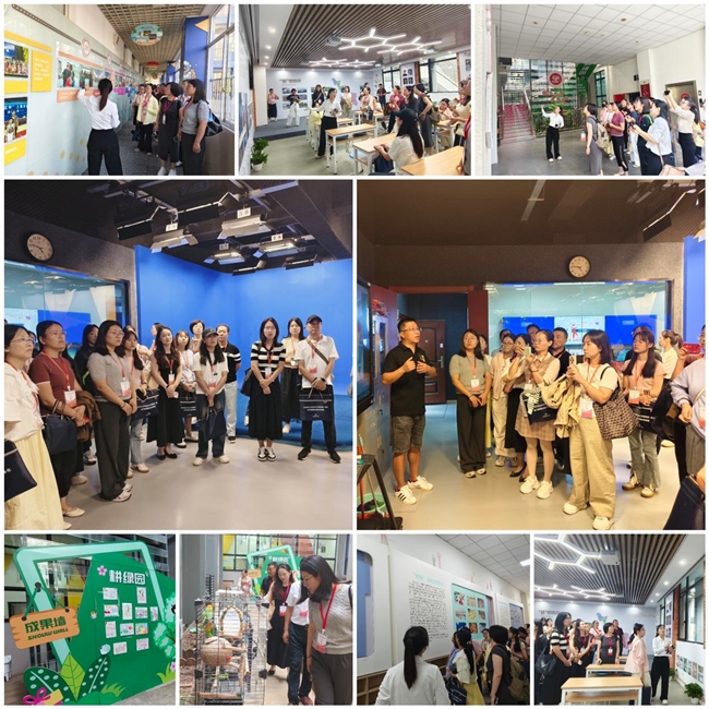 实地观摩环节,小学、初中组教师走进上海交通大学附属实验小学,参观体操中心、校园电视台等场所,感受该校思政教育实践。副校长杨永茹以《铸魂・融通・力行》为题分享“交大实小范式”,教师们还观摩了《低碳“童”行,科创美好》课例并交流。高中、大学组教师前往上海市闵行区浦江第一中学,通过校领导讲解实施方案、分享民主教育实践、介绍党建引领做法等六大议程,学习该校思政创新经验,并围绕思政教育展开深入交流。