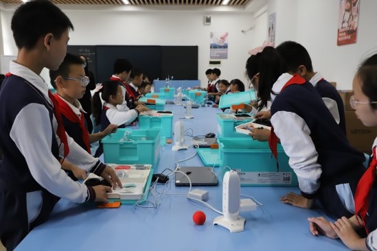 在人工智能实验室,同学们迎来了一次动手动脑的实践体验——学习智能风扇的制作。通过老师的耐心指导,他们初步了解了简单的传感器原理、编程逻辑以及其在日常生活中的应用。同学们专注投入,积极尝试,在亲身体验中领略了人工智能技术的奇妙与智能控制的便捷。