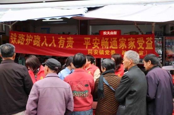 活动期间,同安镇整合多方力量,组建了由镇村干部、基层网格员和志愿者构成的宣传队伍,深入铁路沿线的重点村落、中小学校园、农贸市场等人流较为密集的场所,因地制宜地开展靶向宣传。在宣传点上,工作人员设立了法律咨询台,耐心解答群众疑问;悬挂起醒目的宣传横幅,营造出浓厚的爱路护路氛围;向过往群众和沿线住户发放《铁路安全管理条例》宣传手册、爱路护路倡议书等资料,共计200余份;同时,利用多媒体设备循环播放铁路安全警示教育片,以直观震撼的画面敲响安全警钟。