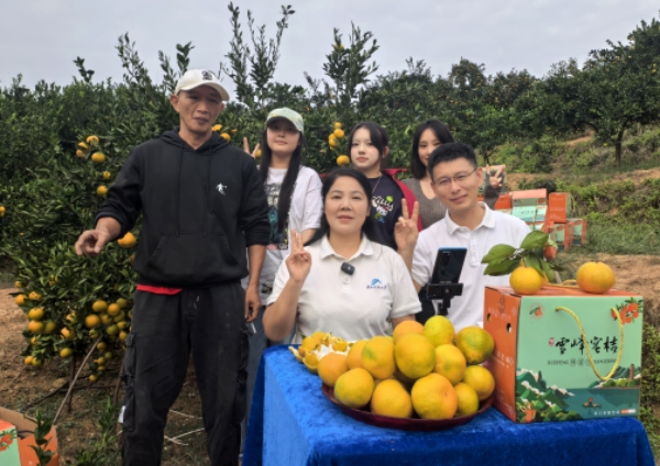 近日,在湖南省洞口县园艺场四组的一片郁郁葱葱果园中,一场别开生面的直播火热进行。湖南科技大学驻古楼村工作队全员上阵,以团队直播的形式热情推介当地特产——雪峰蜜桔。这场持续数小时的直播,成功吸引超30万人次在线观看,订单纷至沓来,有效拓宽了优质农产品的销售渠道,成为古楼村以创新模式助力乡村振兴的生动实践。