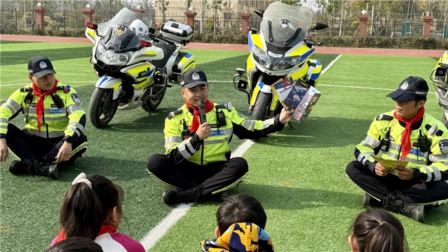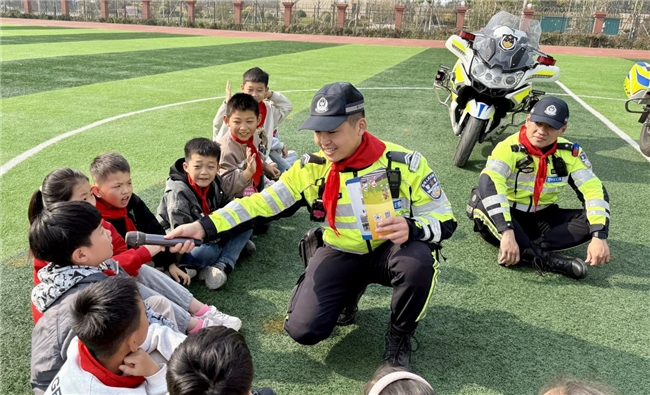 近日,山东省滕州市实验小学陶山路校区邀请交警大队特勤中队民警走进校园,为师生讲授交通安全知识。