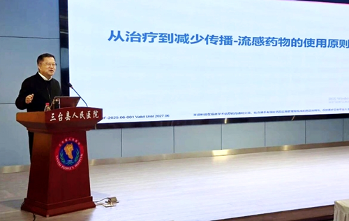 四川大学华西医院呼吸与危重症医学科主任梁宗安教授以《从治疗到减少传播——流感药物的使用原则》为题进行授课,系统阐述抗病毒药物的规范应用策略。他重点强调早期干预对降低流感传播风险的关键作用,为临床合理用药提供了专业指导。