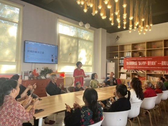 社区社会组织成员们正在分享“隔辈亲”家庭教育