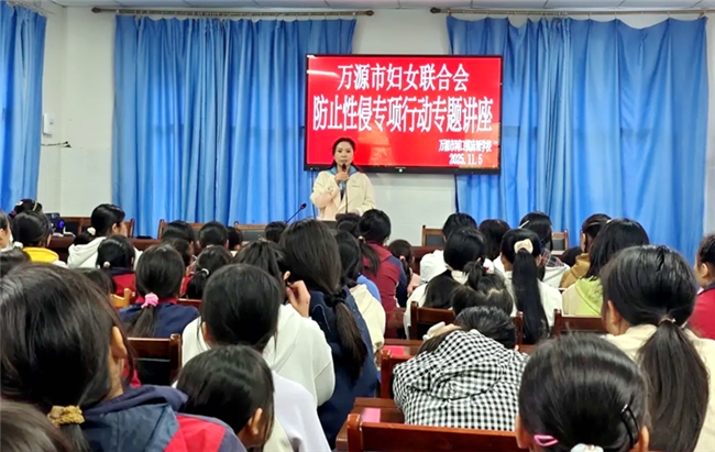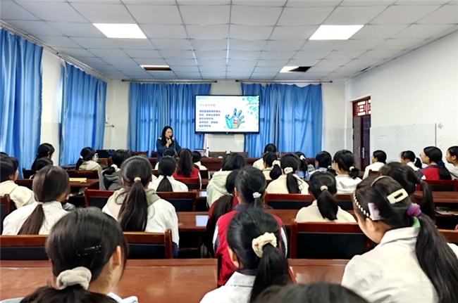 在挖掘内部潜力的同时,庙垭学校积极放眼校外,主动链接社会优质资源,为女生成长引入专业支持。学校特别邀请由万源市妇女联合会引荐的防性侵教育专家陈老师,为三至九年级的全体女生带来了题为《我的青春我守护》的专题讲座。