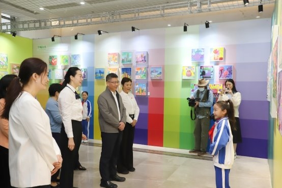 开幕式上,翠园东晓教育集团校领导上台为展览接力寄语,共同祝愿罗湖美育大展宏图。大望学校红领巾讲解员和书画作品小作者用生动的讲解和积极的实践诠释了“山水美育”的鲜活内涵。
