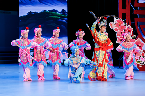 在教学成果展示方面,多所中小学呈现了精心排演的精品折子戏。海沧区北附学校的《打金枝》由两位第27届小梅花奖获得者联袂出演,展现了歌仔戏的独特韵味;厦门高新学校的《红线盗盒》以精湛的独角戏功力赢得观众赞誉;海沧区北附学校的《佘赛花狩猎》,由第29届“小梅花奖”获得者李昀琪等八位同学共同呈现行当齐全、身段矫健展现歌仔戏文武兼备的艺术特色;湖里区华昌小学的《李怨改嫁》通过细腻表演展现歌仔戏的艺术特色;翔安区金山小学的《桃花搭渡》以生动活泼的表演展现高甲戏魅力;集美区康城小学的《南侨精神代代传》通过荷叶说唱形式传承华侨精神;同安区洪塘头小学的《千古雅乐共传唱》展现南音艺术的优雅韵味;思明区公园小学的《牧童曲》以童真童趣演绎传统歌仔戏;厦门实验中学的《雁荡山》以十八人阵容再现京剧武戏的宏大场面。这些节目充分展现了厦门戏曲教育的扎实根基与丰硕成果。