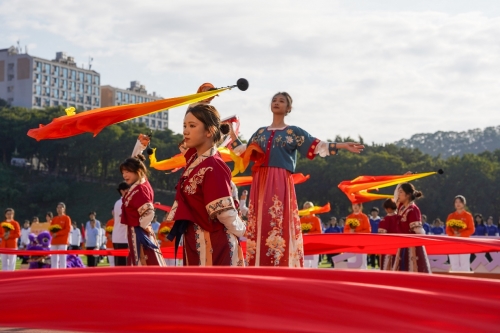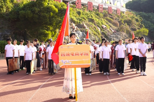 本届运动会开幕式上,跨境电商学院精心设计的主题方阵表演成为亮点。方阵以“丝路精神薪火传,跨境英才谱新篇”为核心创意,巧妙地将历史传承、专业特色与时代使命融为一体。