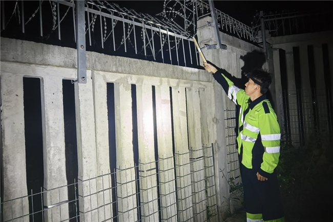 徐兴明与青年职工杨昊睿一组,负责巡查路基边坡和防护栅栏。重点检查路基有无沉降迹象、排水设施是否通畅、防护栅栏是否因雨水冲刷导致基础松动。