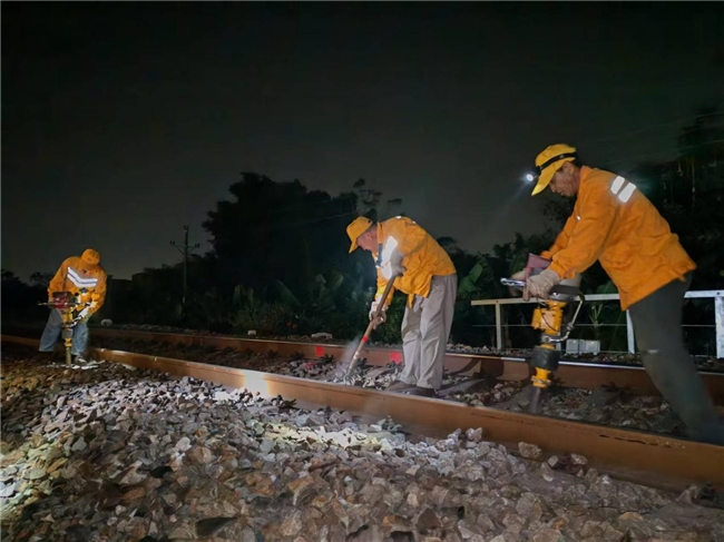 夜阑人静,寒风习习。12月5日20时,夜幕下的铁路线,格外寂寥,铁路的“天窗”即将开始。田军要和工友们在广茂铁路110公里至110公里完成线路起道捣固作业任务,确保列车运行安全平稳。