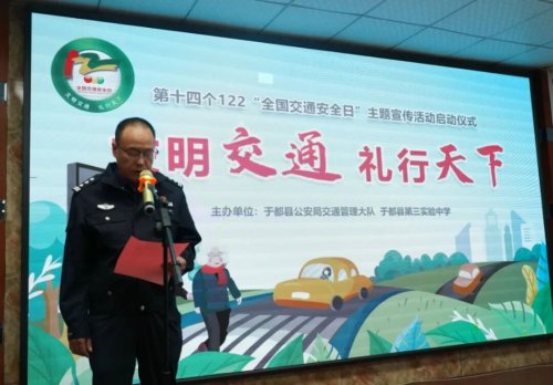 活动现场,于都县公安局交通管理大队副大队长杜荣群亲临指导,为本次活动致辞,针对学生出行常见的过马路、骑行、乘车等安全隐患提出具体防范建议,让在场师生深刻认识到交通安全的重要性。