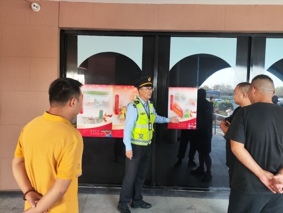 “师傅您好,今年国庆咱们江苏高速有两大变化,出行会更便捷、更有保障。”执法人员一边张贴着宣传海报,一边向驻足围观的司乘人员耐心地介绍着。