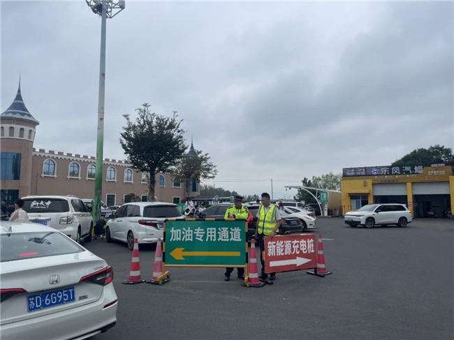 为给司乘人员假期充电提供便利,节前大队提前协调多方力量,为两个服务区各新增20把充电枪,大幅减轻充电排队压力。充电车辆一入区,就能看到清晰的加油、充电区域引导牌,还有专门的物理隔离通道;同时有大队队员现场引导,不让其他车辆误入,保障充电一路顺畅。遇到不熟悉充电设备操作的车主,大队队员会联合服务区值班人员主动上前帮忙,手把手指导操作,让车辆能快充快离、不耽误行程。更贴心的是,通过扫描出行二维码,大家还能实时查到沿途哪些服务区充电车位宽松、哪些需要错峰,提前规划好路线,再也不用为找充电位发愁,充电效率大幅提升。