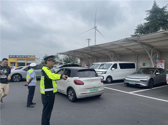 近日,高速公路车流量持续增加,为保障新能源车辆充电需求,江苏省交通综合执法局徐盐支队第四大队采取多项举措维护服务区充电车辆秩序,为出行公众积极营造良好出行环境。