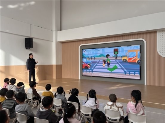 活动中,刘警官围绕幼儿日常出行的高频场景,从步行、乘车、户外玩耍等方面展开讲解,重点强调了幼儿园周边道路的安全注意事项。他结合辖区内发生的典型案例,提醒孩子们远离货车盲区、不随意横穿马路、正确使用儿童安全座椅等关键要点。同时,刘警官还普及了家校配合开展交通安全教育的方法,建议家长以身作则,在日常出行中为孩子树立遵守交通规则的榜样。