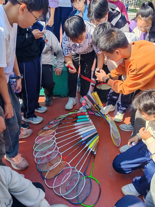 另一边,羽毛球拍、绳索等材料被“改造”成“救援扶梯”:同学们先画草图计算倾斜角度,再用球拍框架拼接成梯身,反复调试连接处的稳定性。“一开始搭的扶梯一踩就晃,后来调整了横杆间距,承重立刻变稳了!”参与搭建的学生分享道,从数学建模到实际组装,再到一次次承重测试,他们在试错与调整中,真切感受到理论知识如何落地为实用的工程设计。