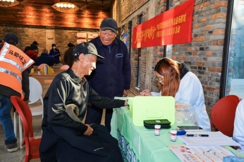 活动现场划分多个功能区域,为老人提供全方位暖心服务。义诊服务区内,2名专科医护人员为老人开展血压、血糖检测、心肺听诊等基础体检,针对高血压、心血管病等慢性病提供专业咨询,并围绕冬季高发的疾病等病症,给出科学预防建议与用药指导,对指标异常的老人及时提醒就医复查。