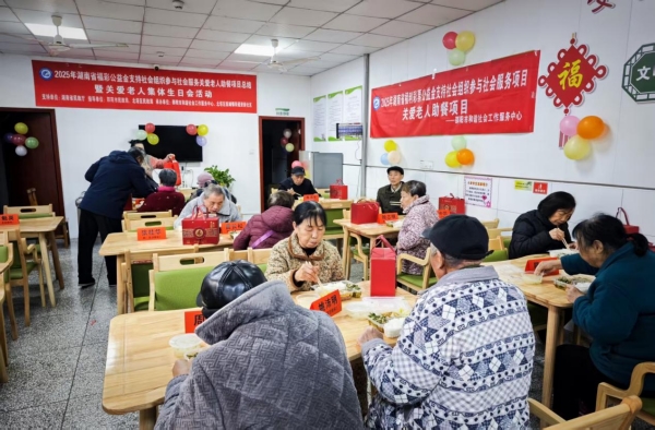 12月15日中午,湖南省邵阳市北塔区资新社区长者食堂内暖意融融,欢声笑语不断。为期三个月的“关爱老人助餐项目”在此圆满落下帷幕,同时一场专为14位当月生日老人举办的集体生日会温情上演,用一碗热饭、一场仪式传递社区对长者的深切关怀,让冬日的食堂成为充满爱的“温暖港湾”。