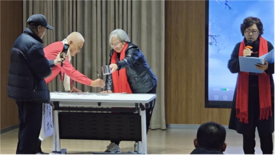展演环节亮点纷呈,社区志愿者舞蹈队带来《永远是一家》,舞姿优美;海燕读书会合唱《四渡赤水》,歌声嘹亮;太极拳团队展演传统杨式太极拳85式,尽显传统文化韵味。文化分享环节,两位居民结合自身经历,讲述尊老爱幼、勤俭持家的家风故事,质朴真挚的话语打动全场。两轮有奖互动将氛围推向高潮,居民踊跃参与,增进了邻里情谊。后续展演中,升庵诗社朗诵《天府家风颂诗》,赠予社区书法作品,为活动增添了浓厚文化底蕴。