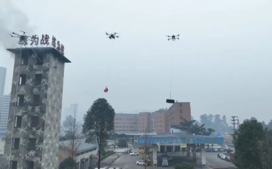 无人机动态演练精彩上演,在侦察、建模、疏散、灭火、转运等实战科目中,各类无人机精准作业、默契配合,充分展现了其在复杂场景下的救援优势。