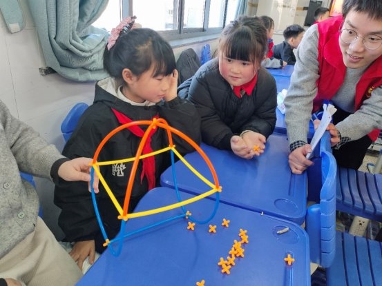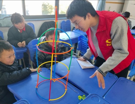 近日,冬日的阳光透过玻璃窗,洒在浙江省杭州市桐庐县徐凝小学一间明亮的教室里。空气中洋溢着孩子们轻盈的欢笑声与热烈的讨论声。依托国家级志愿宣讲团“管”爱童行青年志愿宣讲团,浙江工商大学杭州商学院的志愿者们正与孩子们一同开启一场别开生面的创意之旅——“小吸管,搭世界”未来工程师搭建活动。这不是一次简单的手工课,而是一场融合工程思维、美学感知与团队协作的创造性实践。