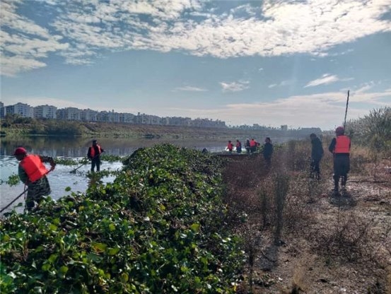 区域联动,推动碧水共治。街道主动对接上游乡镇,建立信息共享与联合打捞机制,通过“源头管控、中游拦截、下游清理”的全链条治理模式,有效减少水葫芦跨域扩散。