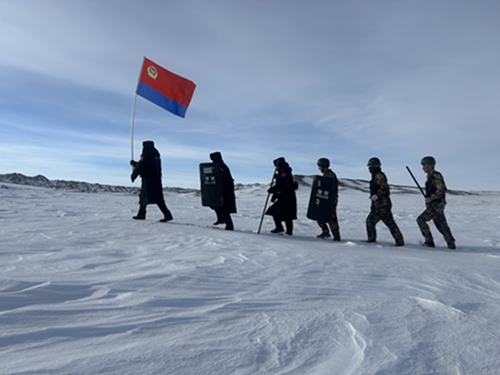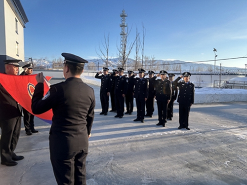 择一域守一方,护边疆赴使命。从警旗前的庄严承诺到边境线上的执着坚守,新疆出入境边防检查总站阿勒泰边境管理支队查干郭勒边境派出所全体民、辅警始终以风雪为袍、以忠诚为盾,用青春与坚守向人民警察节献礼,向祖国和人民交出“边境有我,平安无虞”的坚定答卷。(李晓松、郭盼)