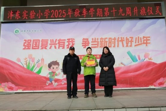 为表彰贾贯之同学关爱生命、保护自然的善举,学校于近日的周一晨会中为他举行了特别颁奖仪式。阿房宫派出所李警官专程来到学校,与吕晓希校长一同为贾贯之同学颁奖,并授予其“爱鸟护鸟好少年”荣誉称号。校方表示,这份荣誉不仅是对贾贯之同学个人行为的肯定,更是向全体师生传递了珍爱生态环境、守护多样生命的重要理念。