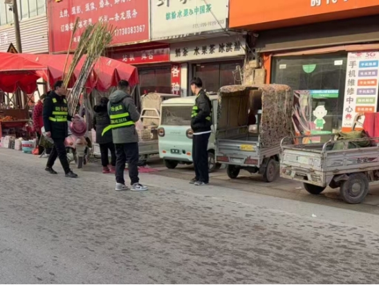 在占道经营整治现场,工作人员秉持“教育为主、处罚为辅”的原则,采取“疏堵结合”的治理方式,对集市主干道、出入口等重点区域进行拉网式排查。针对流动摊贩占道经营、商户出店经营、车辆乱停乱放等影响通行安全的乱象,执法人员逐一上前耐心劝导,详细讲解相关法律法规,阐明占道经营对道路通行、公共安全的潜在危害,引导商户自觉进入指定区域规范经营。对拒不配合的违规行为,依法采取规范整治措施,累计疏导流动摊贩30余起,规范出店经营商户10余家,清理违规占道物品一批,有效释放了公共空间,保障了集市道路畅通有序,让群众采购之路更舒心、更安全。