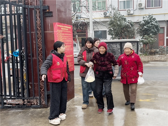 针对社区高龄、独居及行动不便无法到场就餐的老年群体,社区专门组织志愿者组建送餐服务小组,逐户上门配送热餐。送餐过程中,志愿者详细询问老人的身体状况与生活需求,贴心提醒老人注意冬季防寒保暖与居家安全防护,将热乎餐食与细致关怀送至家中,实现老年群体关爱服务全覆盖。