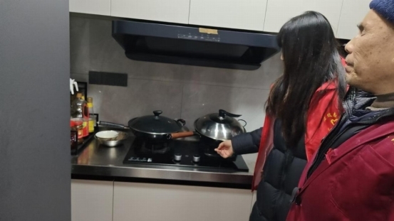 近日,江苏省盐城市盐城经济技术开发区民政服务站志愿者走进江苏省盐城市盐城经济技术开发区步凤镇安龙村凤栖苑的张卫民家中,开展入户安检服务。在厨房区域,志愿者俯身检查燃气灶的阀门密闭性、电器设备的线路老化情况,还手把手向住户讲解“用完即关气”“电器不用要拔插头”等安全细节;同时细致询问生活需求,将安全守护与暖心关怀同步送到家门口。