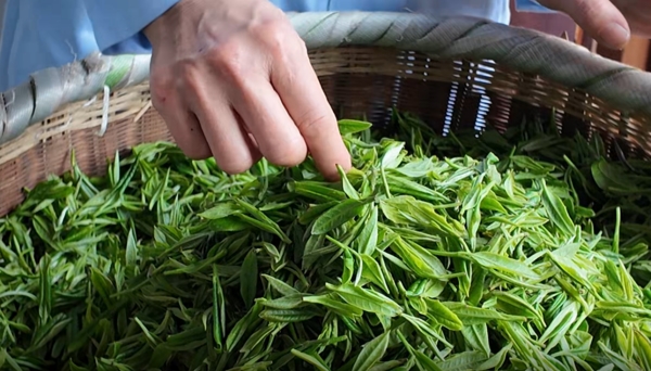 清晨的露珠还挂在茶芽上,茶农们已挎着竹篓走进茶园,抢抓明前、雨前黄金窗口期,争分夺秒采下春茶第一茬鲜叶。“以前我们本地种的茶叶,都是各家各户零散栽种,自己采摘、自家饮用,从来不会拿去售卖,根本产生不了经济效益。”双飞村七组茶农肖素贞一边采茶一边感慨,“现如今村里组建了茶叶合作社,统一收购、统一销售,销路彻底打通了,在家门口就能务工挣钱,我们老百姓实实在在赚到钱,日子也越过越舒心。”
