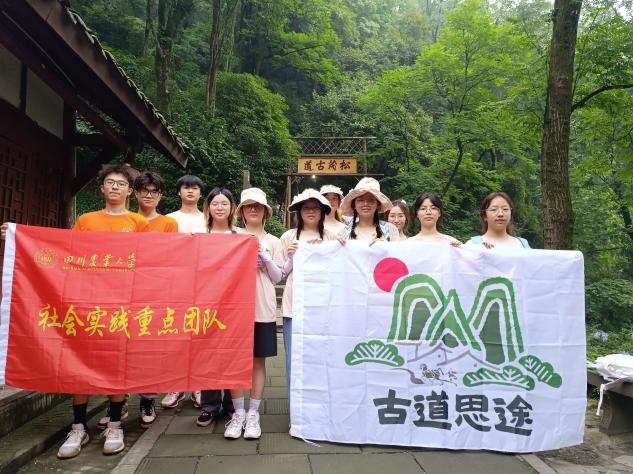 松茂古道又名“茶马古道”,与金牛古道在历史作用上具有不完全相同的作用,这条起于都江堰通往“蛮夷地区"的道路是成都平原连接松潘和茂县惟一通道,通过景区专业人员的讲解,团队成员了解到在古代这是一条承担着重大运输作用的通道,经济与文化的交流被汇集在这长长的运输道中,进行着茶叶、药材、盐巴等丰富物资的交换。在几个小时的实践时间内,团队成员收获了颇多相关知识与发展情况,对团队成员进一步掌握古道系统化、全面化知识起着极大的促进作用。